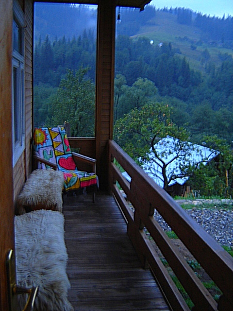 Захотелось новых ощущений, и я вышла наружу посмотреть на небо. Его заволокло тучами, они проглотили все звезды. Сквозь  плотное  черное  покрывало ночи проглядывало два огонька – кому-то тоже не спалось. Я попыталась представить, что сейчас делают эти люди. Почему-то подумалось, что это  львовский художник  Богдан Сорока  (у него в Дземброне дача)  пишет свою очередную картину, от которой  никак не может оторваться  (утром Маричка сказала, что  это была  хата другого дачника  — имя которого здесь не называю —  и что, скорее всего, он  пьянствовал!).