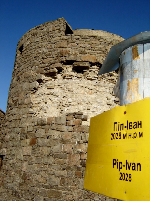 В 1936-1938 годах  на Попиване  поляки и украинцы  построили астрономическую обсерваторию  /Галиция  тогда  была под Польшей/.  Я читала, что Черногорский  хребет  называют кухней  погоды, так как  там начинают свой  путь  по Украине большинство циклонов, сформированных над Атлантикой  и  на Средиземноморье. Размещение здесь  обсерватории  давало довольно большую точность прогнозов погоды. К тому же на то время  она была, так сказать, носителем  прогресса в Европе. Как  на  такую  высоту  втянули всю эту  груду камней, из которых обсерваторию выстроили /там  было три этажа!/ и железные трубы  /функционировала баня с горячей  водой!/, —  непонятно.  А вот почему  это строение в сороковые годы было в  пух и прах разграблено, —  ясно без слов. Начали с  металлической крыши  и дальше  у людей  крыша  ехала  по полной  программе, —  вынесли все дочиста, разве  что железные трубы не удалось выворотить. Теперь внутри  — только  развалины. Внешне строение похоже  на мрачный  каземат, а  внутри — на памятку жуткого средневековья.