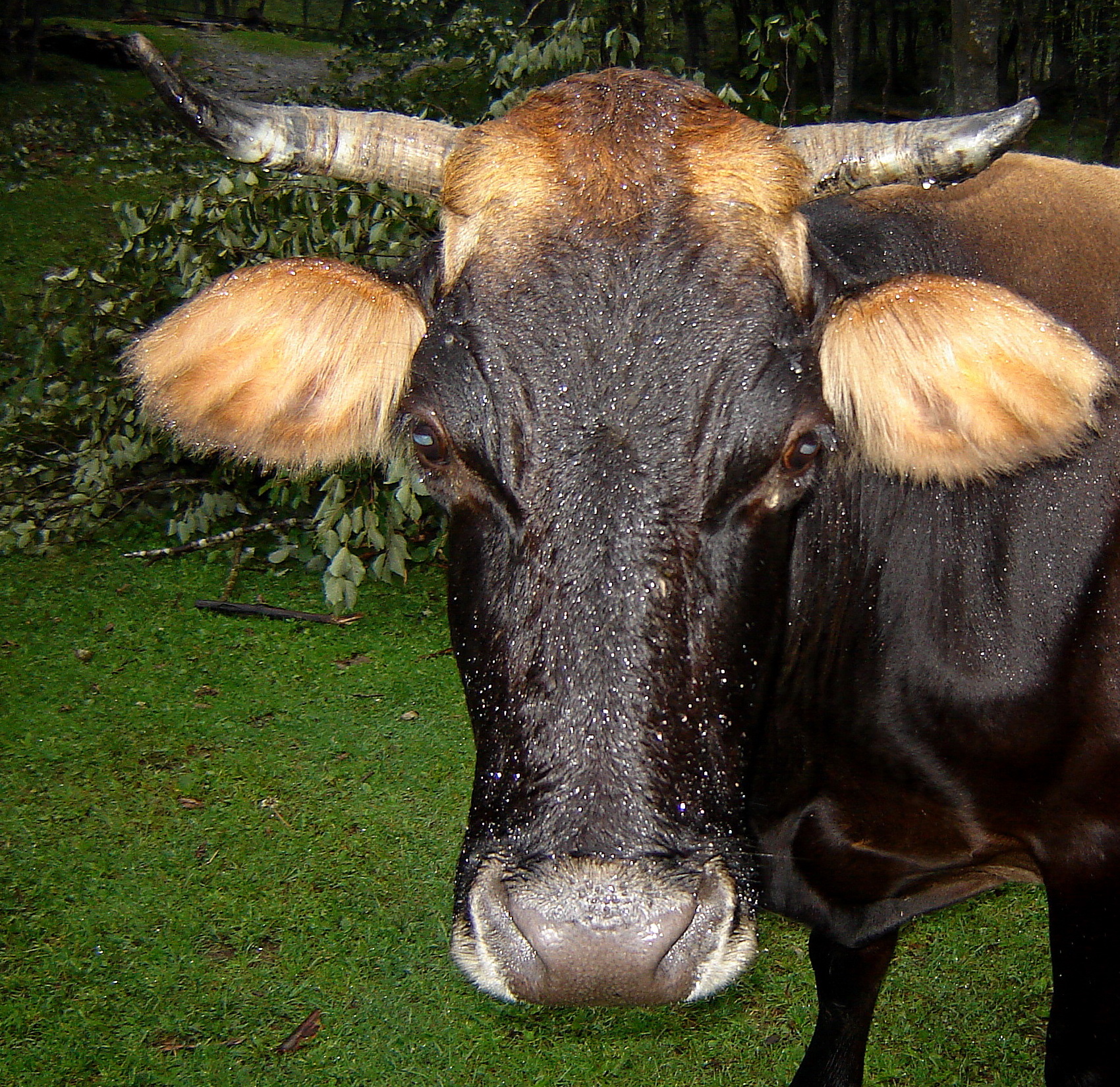 По дороге за нами погнался  бык  /может, он меня  перепутал с тореадором/, и мы  показали хороший  результат на стайерской  дистанции, скатываясь со склонов горы  на пятой точке и  лихо перемахивая  через поваленные деревья  и корни.