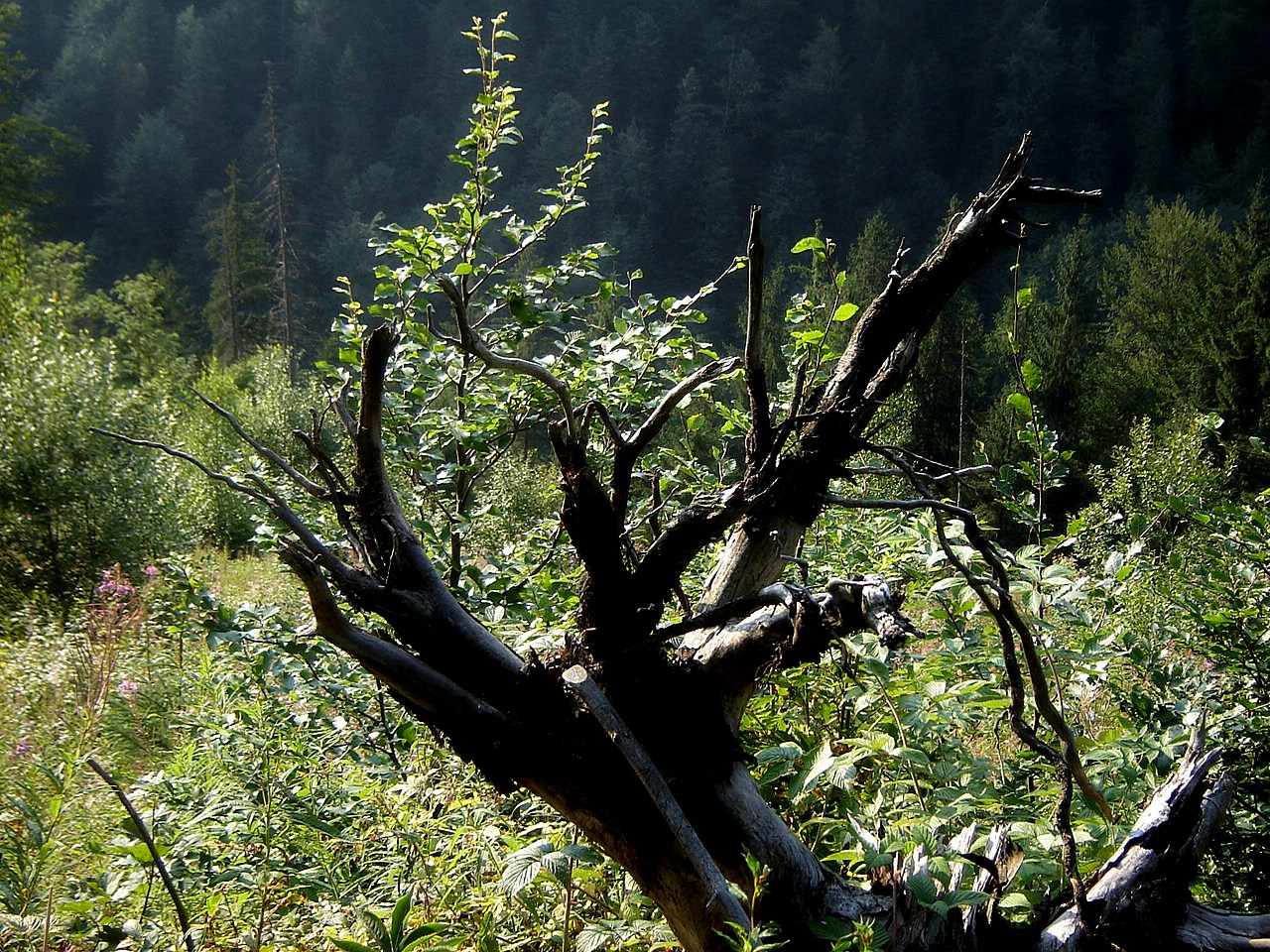Забрела Бог знает  куда от Маричкиной  хаты (моя подруга, к которой приезжаю в Карпаты).  С моим неподражаемым умением заблудиться в трех соснах это очень даже  смело. Я  не запоминаю  никаких ориентиров, хотя и пытаюсь держаться  бороздки, которую  оставили  потічки (ручейки) , некогда здесь протекавшие.  Возвращаться назад не хочется,  хочется брести вперед, куда глаза глядят. Классно, что можно просто шарахаться  — безо всякой цели,  а то ведь жизнь городская постоянно меня держит на коротком поводке. В Карпатах  же я могу отрываться,  и одергивать меня некому. Я люблю бродить одна…