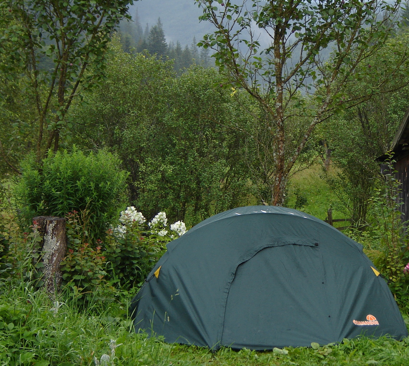 В эту  же ночь решила провести испытания!  Поставила свой матерчатый домик недалеко от Маричкиного, деревянного,  и решила переночевать в своем походном жилище.