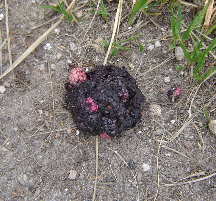 Одно чудо  все-таки произошло. Но это чудо лесников тоже не боится…  Мы увидели то, что на этих  черногорских  тропах отродясь не видывали. Конечно, некрасиво это показывать, но иначе вы просто не поверите, что на таких затоптанных дорожках, кроме туристов, хаживают еще и медведи.  С точки зрения медвежьего инстинкта самосохранения (от людей любой зверь прячется…) это даже очень легкомысленно и смело. Но, судя по ягодкам в помете (поблизости ни малина, ни ежевика не растет),  Топтыгин топал издалека.