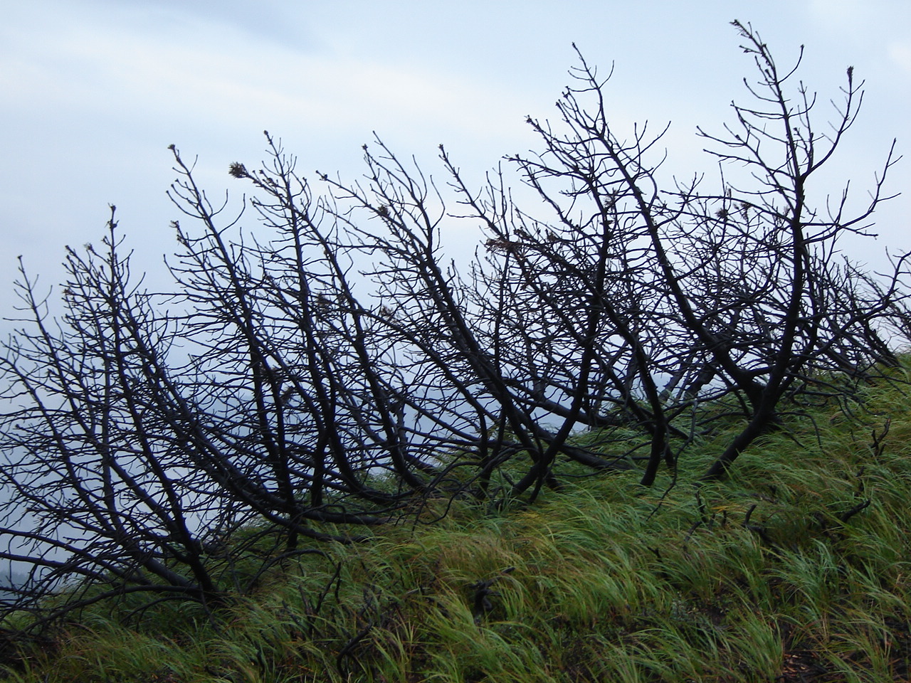По дороге Маричка рассказала мне подробности прошлогоднего пожара (я написала об этом в главе 1).  Неделю бушевавший пожар тогда погасил лишь обильно выпавший снег… Мы увидели мертвую полосу заповедной альпийки (карликовой сосны), тянущуюся на несколько километров…