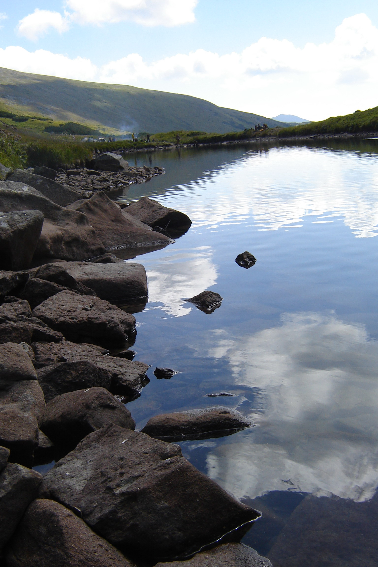 Озеро Бребенескул, где мы с Маричкой остановились на второй (и последний в этом туристическом сезоне) ночлег, — самое высокогорное в Украине (1801 м). Оно находится в цирке (то есть в котловане) между одноименной горой (Бребенескул – вторая по высоте гора в Украине и тоже мною взята!) и горой Гутин-Томнатик (тоже двухтысячник, взят!).