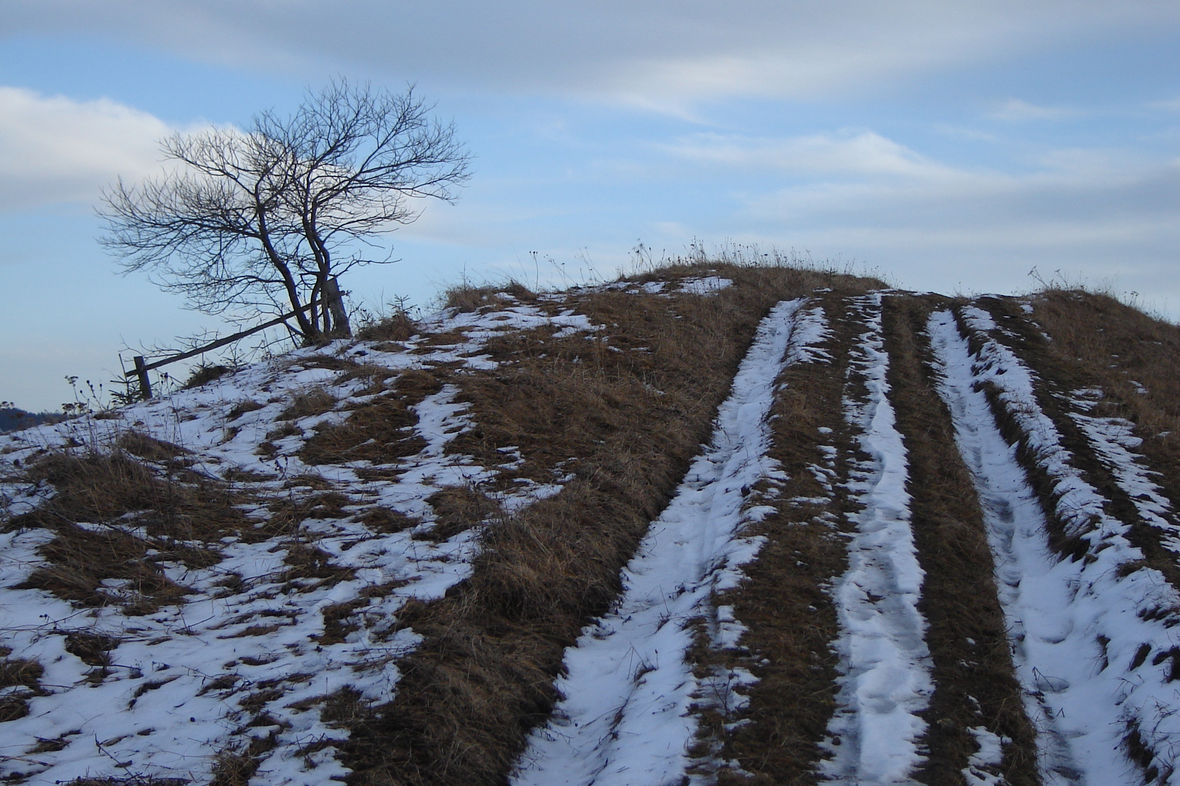 Беру свою «Соньку» и отправляюсь на Степанское – горочку, которую ежедневно наблюдаю из «своей» хатки. Я фотографировала ее летом, но зимой (даже при полностью растаявшем снеге) – иные оттенки.