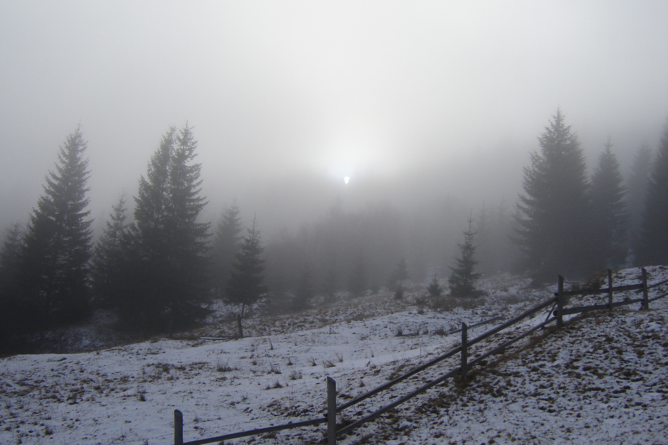 Все в сплошном тумане, в котором нечетко маячат зубцы смерек, между двумя кронами которых застрял раскаленный добела солнечный диск. Он разгорается все ярче, разливая все шире свое сияние. Картина меняет свои оттенки каждую минуту. Несравненный Художник подарил мне целую галерею, экспозиция которой обновляется с каждым днем.