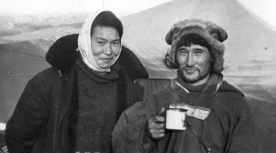 * Бригадир оленеводческой бригады Саша Окок с женой Леной после ночного дежурства у стада.