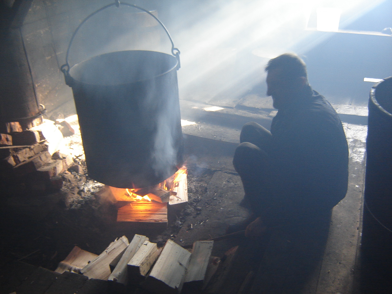 Эти снимки я сделала на полоныне Кырнычный во время своего летнего посещения. Здесь виден производственный процесс 🙂 Но долго смотреть на него я не могла – дым глаза разъедает, а пастухам хоть бы хны…