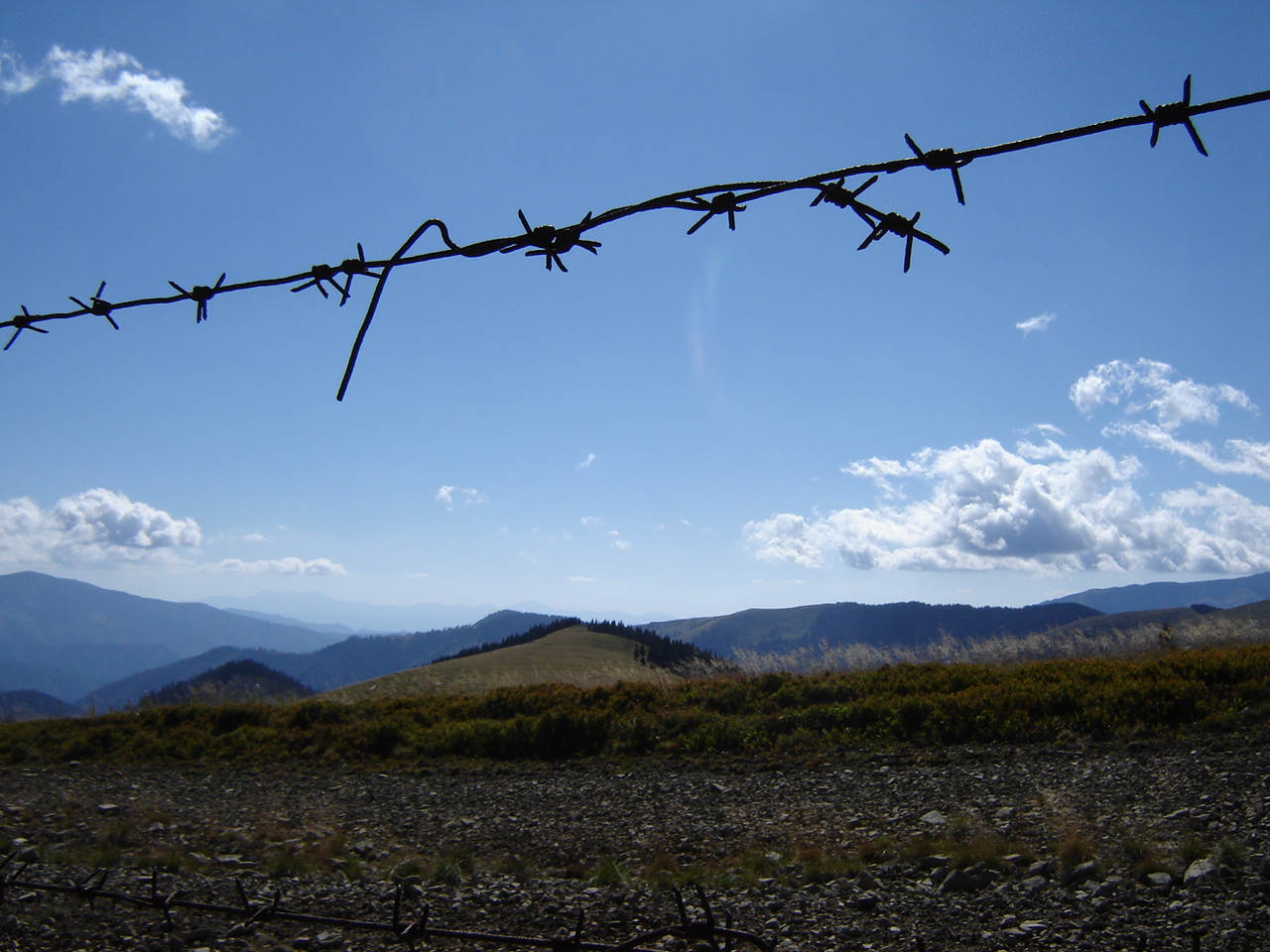 Странно все-таки идти по горам, искусственно отделенным от таких же людей (только говорящих на другом языке) «колючкой». Столбики портят ландшафт, который без них воспринимается как одно целое.