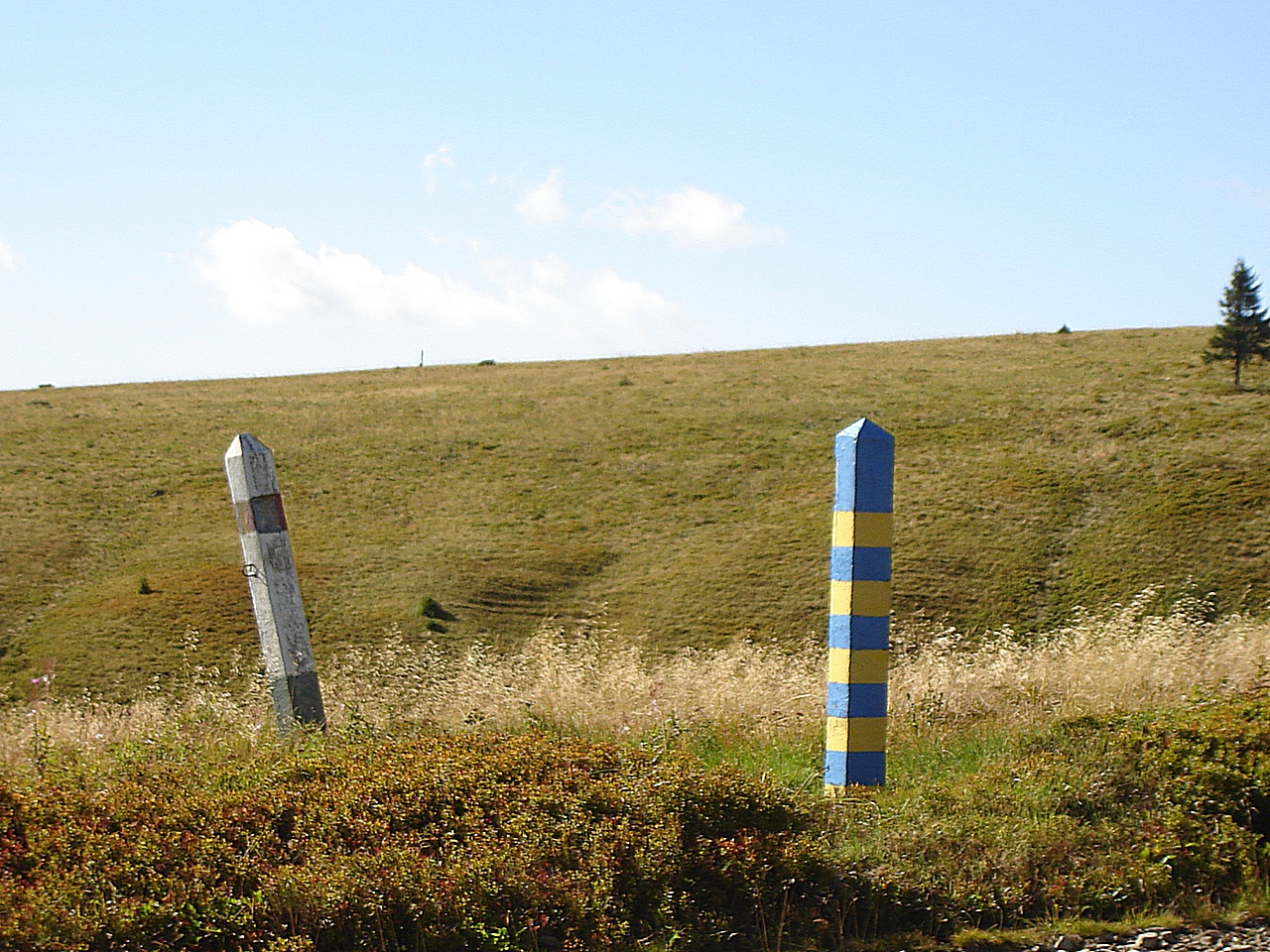 Продвигаюсь вдоль украино-румынской границы. Кое-где стоят наши свежевыкрашенные и выцветшие румынские столбы.