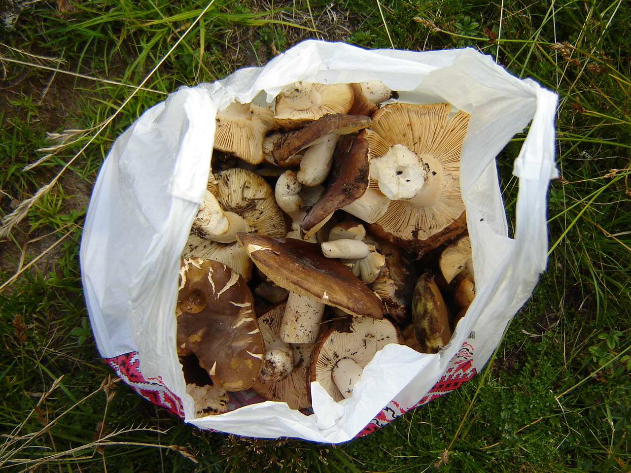 Лето засушливое, дождей практически нет. Возможно, они, дожди, дожидаются моего выхода на маршрут ;). А грибы ждут пропитания, то есть влаги. Кое-где выткались из земли сыроежки, которых местные и грибами-то не считают. Они называют их «голубинки», уж не знаю, за что, за цвет вряд ли… А собственно грибы (грибами гуцулы называют только белые!) затаились. Я набрала немного «не грибов» не голубого цвета, будем с ними что-то делать.